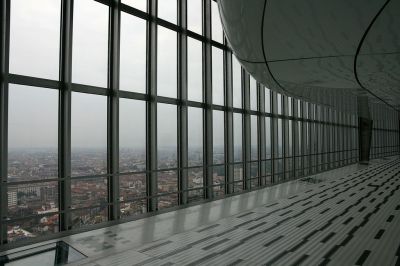 Il grattacielo Pirelli, grande opera della maturità dell'architetto Giò Ponti, fu realizzato tra il 1956 e il 1961. Le pareti esterne, alle estremità, sono sono interamente rivestite a mosaico da tesserine quadrate in ceramica di 2 cm di lato.» |