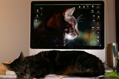 |  | Il mio gatto tigre sorveglia, dal mondo virtuale,