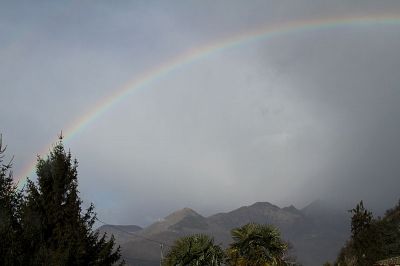 «Stamattina un arcobaleno è improvvisamente comparso tra montagna e lago.
